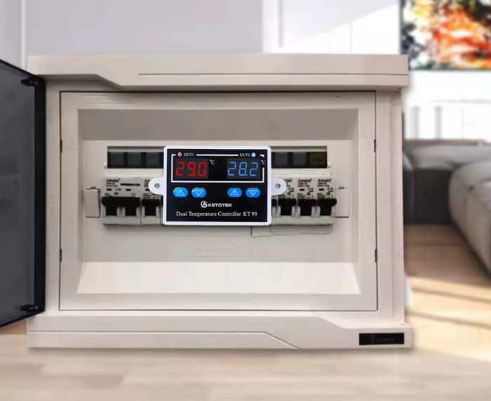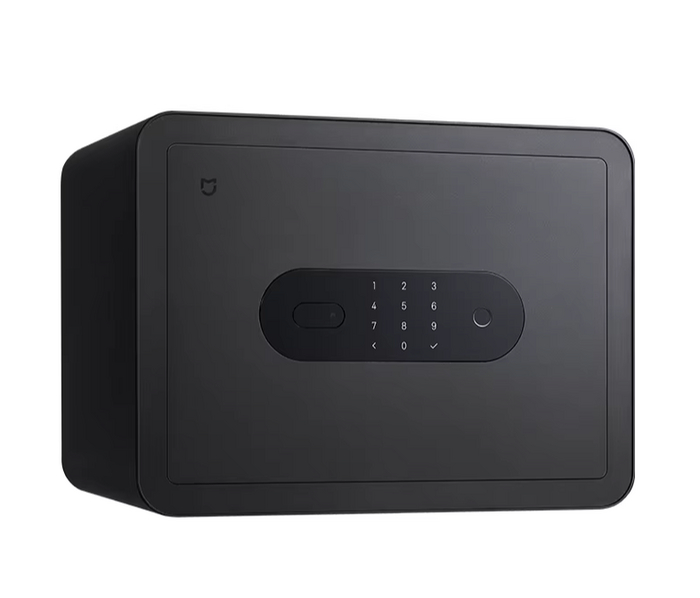 Сейф с множественными способами разблокировки, включая Bluetooth, ключ, пароль и отпечаток пальца. Оснащен функцией виртуального пароля и синхронизацией с мобильным приложением для уведомлений о состоянии и тревогах.