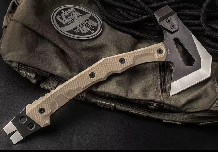 Многофункциональный топор из нержавеющей стали с накладками для удобства хвата. Оснащен гвоздодером, бойком и интегрированными гаечными ключами. Поставляется с чехлом для ношения на поясе.