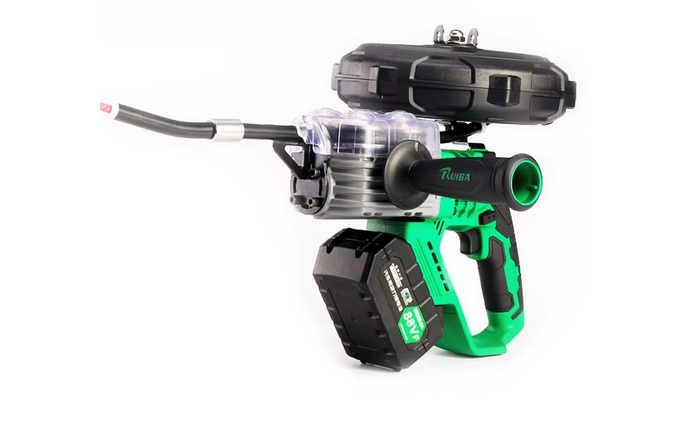 Инструмент, напоминающий перфоратор, для протяжки кабеля внутри стен и других конструкций. Оснащен аккумуляторной батареей и катушкой с тросом.