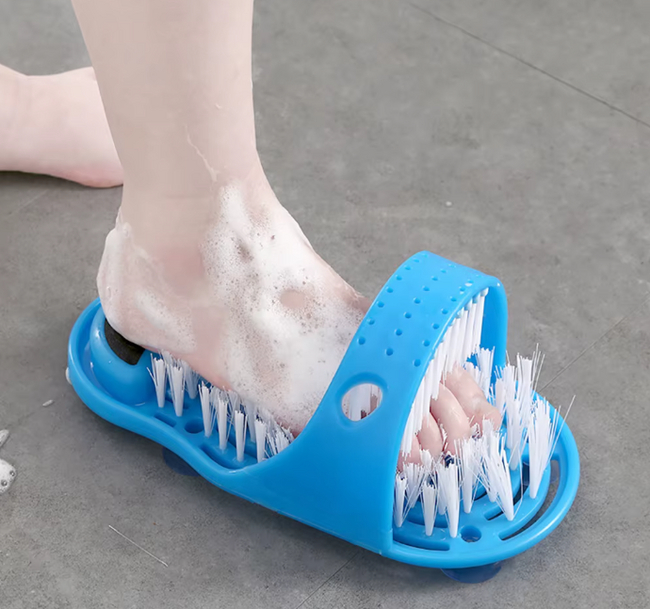 Тапочки для душа с щетинками и пемзой для массажа и ухода за ступнями. Оборудованы присосками для надежного закрепления на гладкой поверхности.