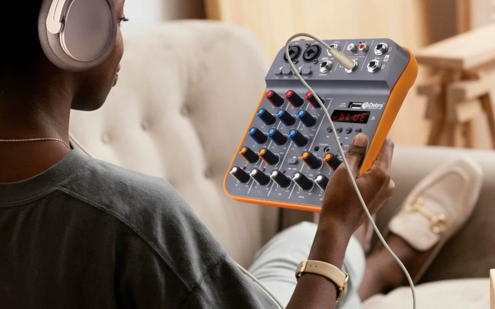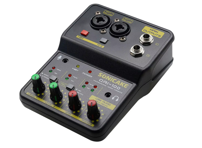 2-канальный аудиомикшер с встроенной звуковой картой, идеален для домашнего караоке, музыкальной записи и использования с ПК. Микшер прост в использовании и предоставляет высокое качество звука.