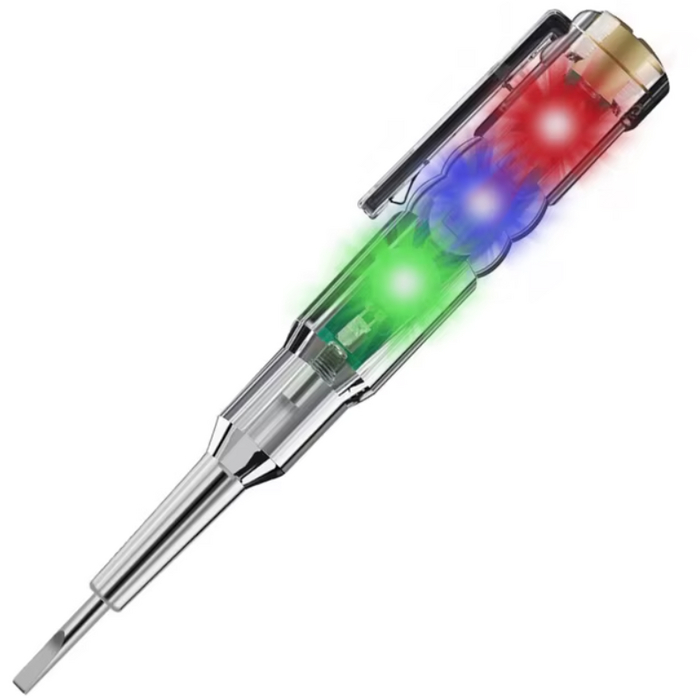 Бесконтактный детектор напряжения со встроенной отверткой и фотоиндикатором. Устройство обеспечивает безопасное обнаружение напряжения без необходимости прямого контакта с проводниками.