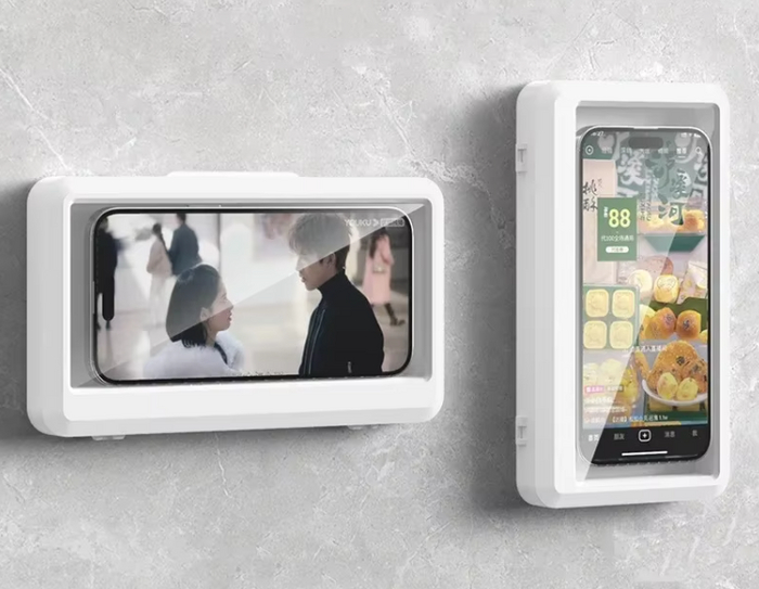 Фиксированный чехол для использования в ванной комнате или душе, обеспечивает полную защиту от воды и предотвращает запотевание. Идеален для просмотра видео или чтения в ванной без риска повреждения телефона.
