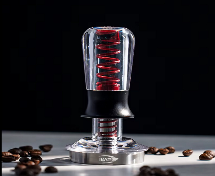 Высококачественный темпер для кофе с пружинной загрузкой и основанием из нержавеющей стали. Обеспечивает равномерное прессование кофейного порошка, улучшая качество напитка.