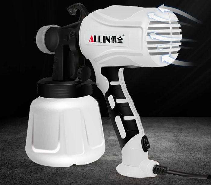 Оснащён съёмным контейнером для краски объёмом около литра. Простая система сборки облегчает промывку и замену жидкостей. Распыляет как водные, так и масляные составы. Работает от стандартной розетки, не требуя дополнительных инструментов.