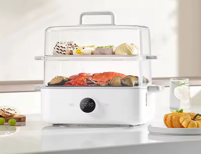 Мощная пароварка объемом 12 литров, способная приготовить несколько блюд одновременно. Время готовки составляет от 10 до 25 минут благодаря мощности 1500 Вт. Устройство поддерживает тепло в течение 8 часов, что удобно для длительных трапез. Более 50 встроенных рецептов доступны через мобильное приложение.
