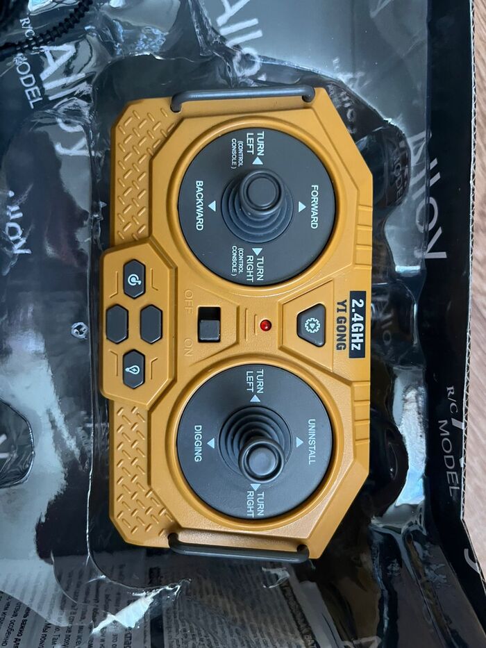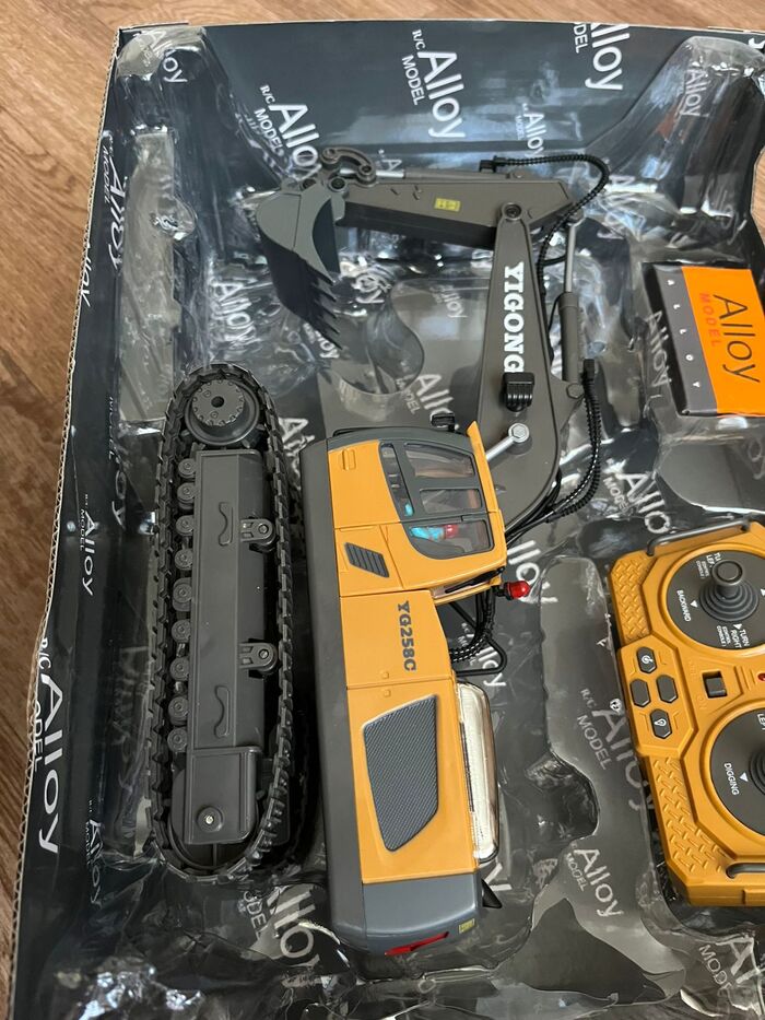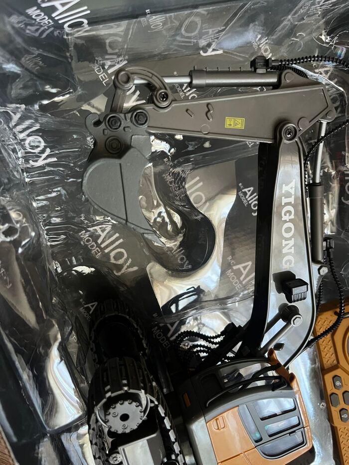 Мне пришел подмененный товар, в общем. Пластик под пульт управления подрезали, чтобы лучше держался и не падал, экскаватор впихнули в неподходящую форму пластика, коробка с зарядкой заклеена скотчем и и для одного мелкого проводка как-то великовата.