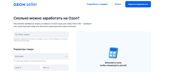 Калькулятор Ozon может найти товар, уже размещенный на площадке, и автоматически подгрузить его параметры для расчета.