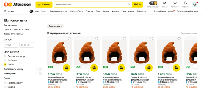 Сейчас на ЯМ шапку-какашку продают селлеры с пометкой “из-за рубежа”. Не знаю, как у них дела, но всю славу они забирают себе – предложений на площадке не много.