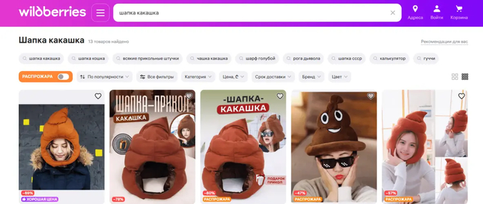 Вывод простой – какашка устарела, но все еще пользуется спросом. Например, на ВБ у селлеров по 250+ свежих отзывов на эти шапки, они всё еще продаются, но внимание сейчас перешло на более популярные, но такие же странные товары.