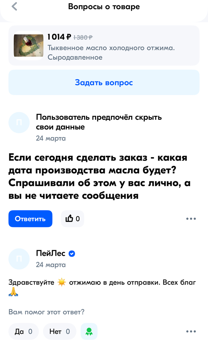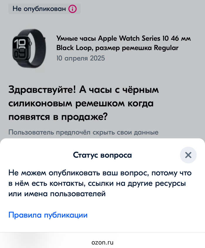 Не всегда нужный тебе товар имеет отзывы покупателей, и чтобы не получить кота в мешке я иногда задаю вопросы по товару. С недавних пор @Ozon заблокировал мне такую возможность без объяснения причин. А без них покупать товары даже по России не всегда удобно:
