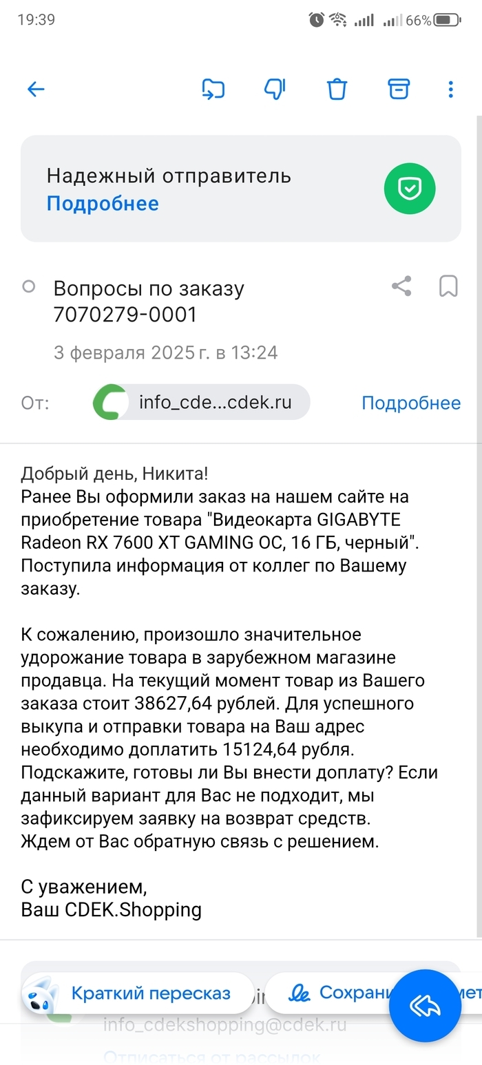 Ну и вишенка на торте. Деньги мне при этом не вернули! Обращение уже закрыто. Я ещё два обращения написал, получил нелепые отписки от новых операторов, которые, разумеется не вникали в историю вопроса.