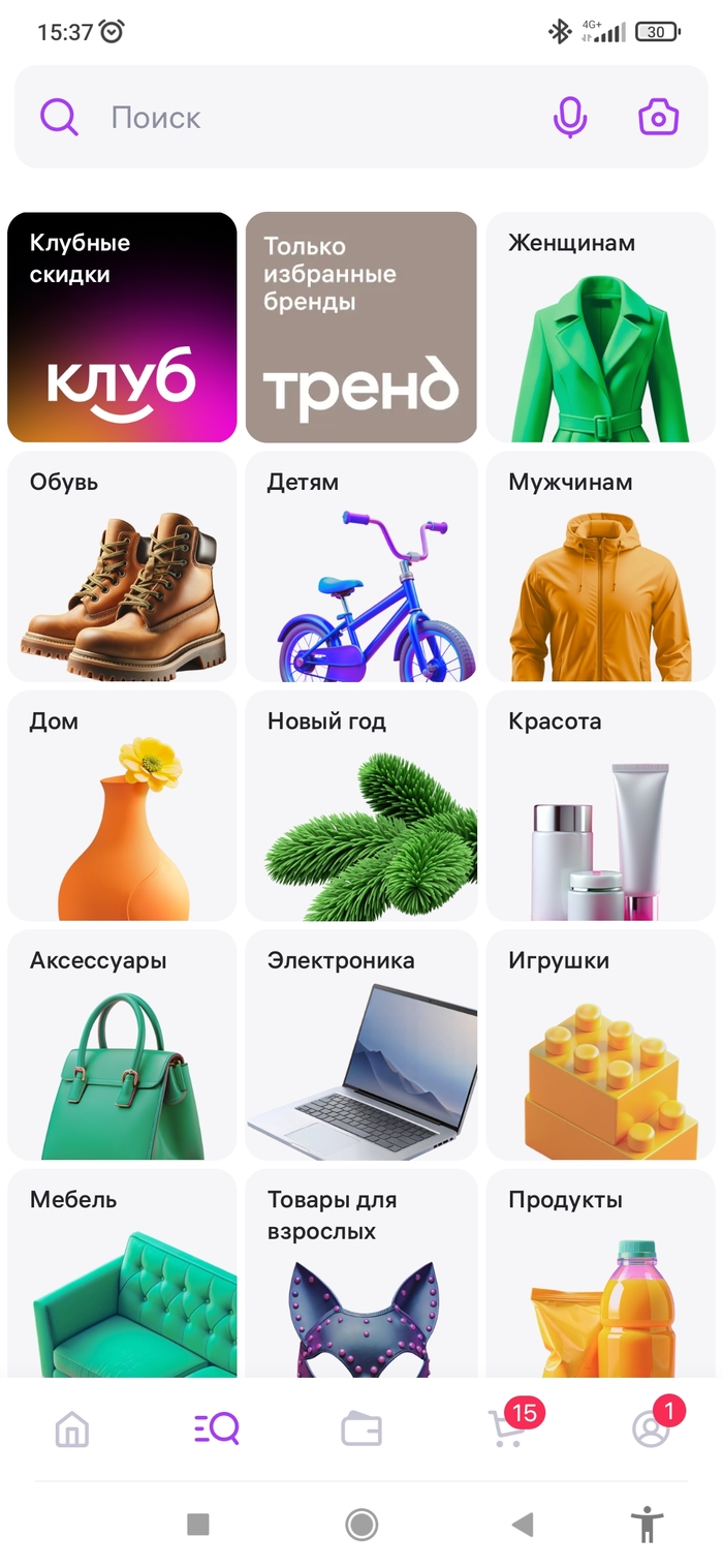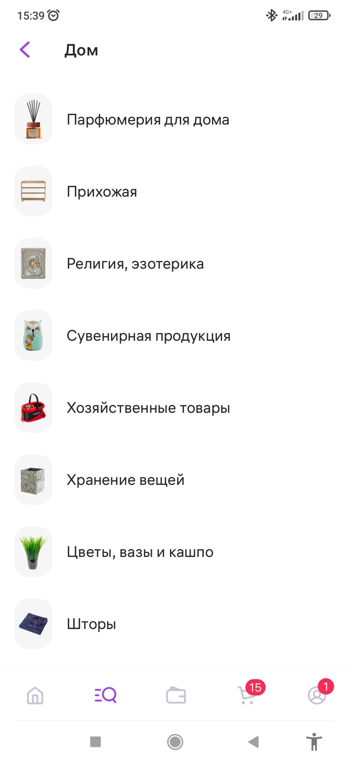 И так, открыв список товаров в приложении ВБ, я буду выбирать из подгрупп дом, аксессуары или сад и дача.