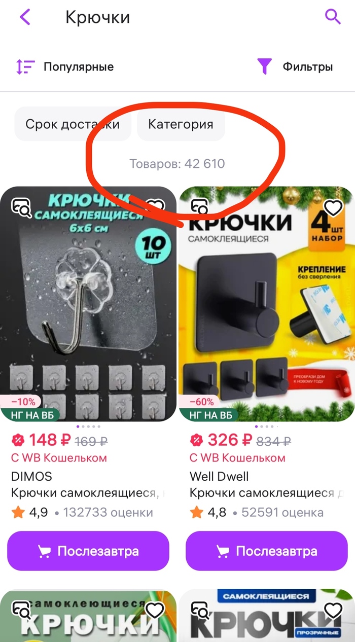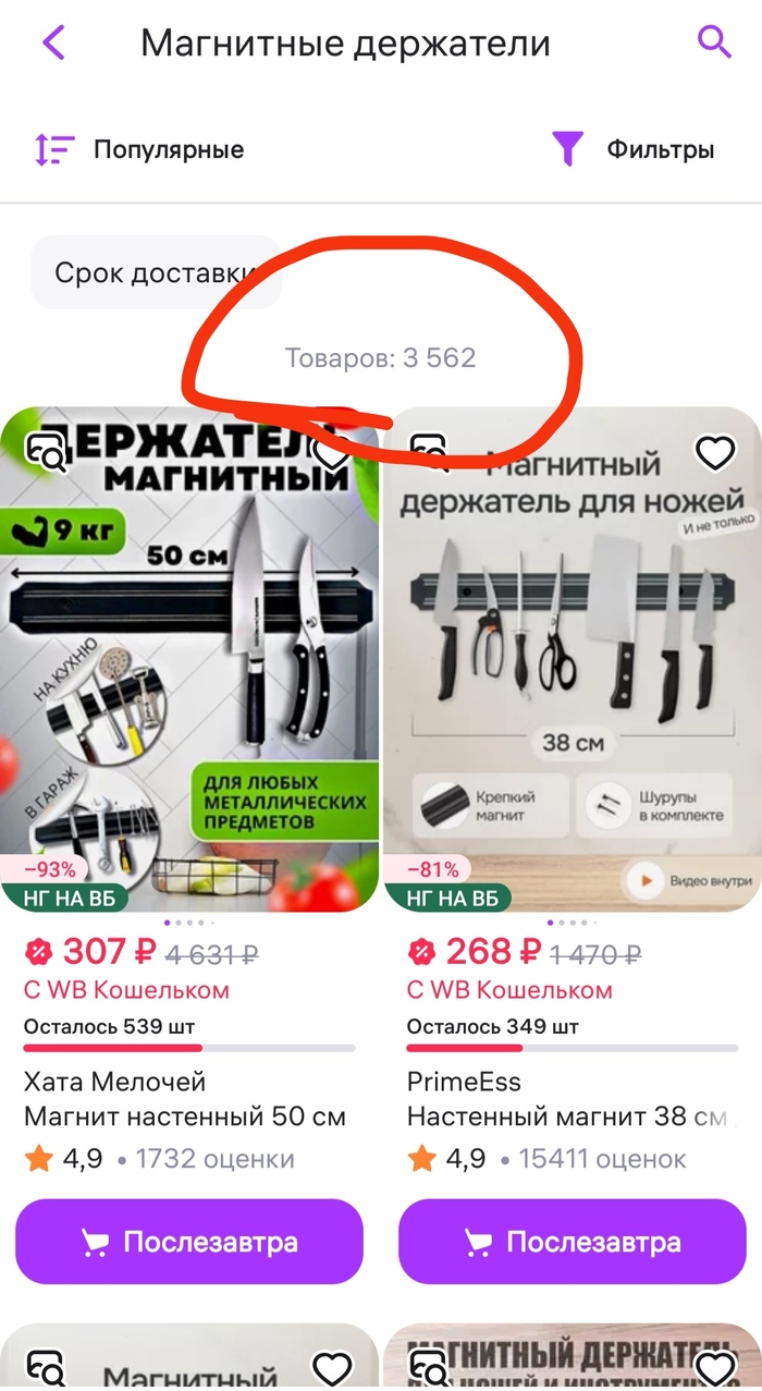 Пока вы не начали свой путь на маркетплейсе поиск товара будет выглядеть примерно так, но если же вы продолжите его, то со временем у вас будут более перспективные инструменты для поиска (сервисы аналитики, различные плагины и прочее), с помощью которых можно более точечно и детальнее изучать рынок.