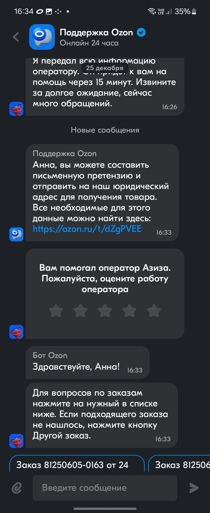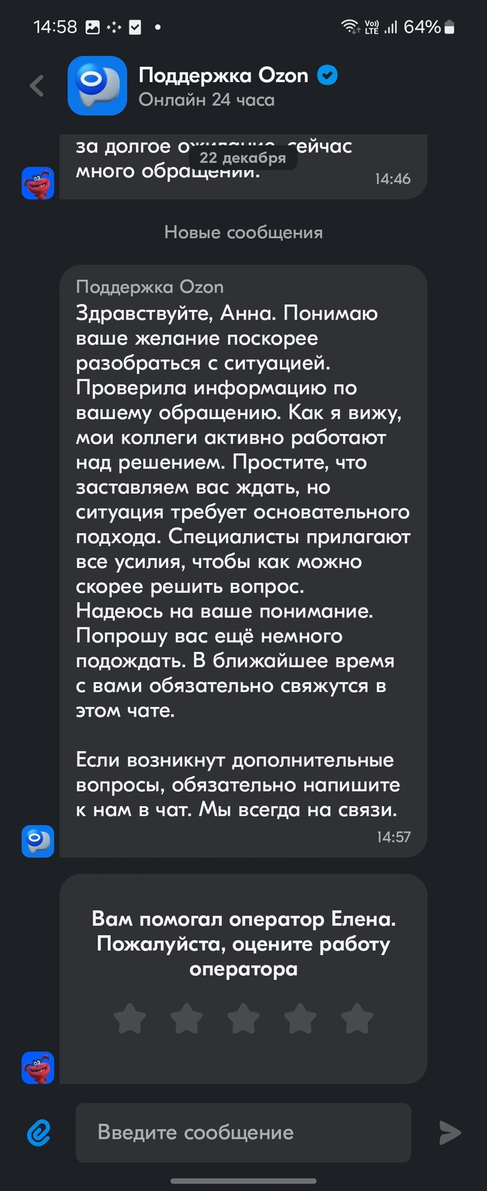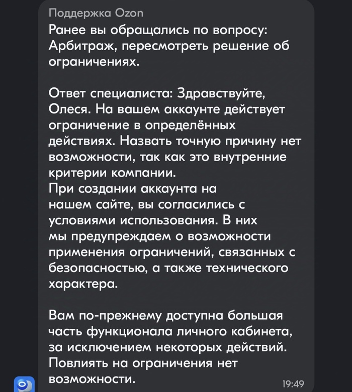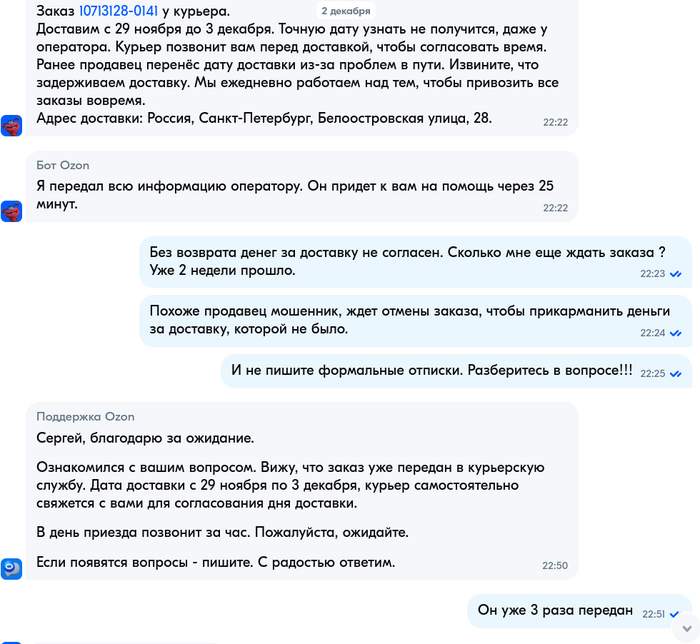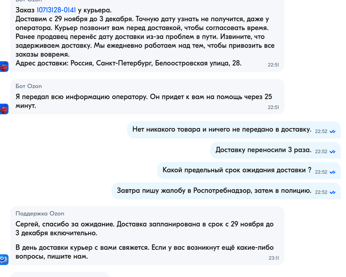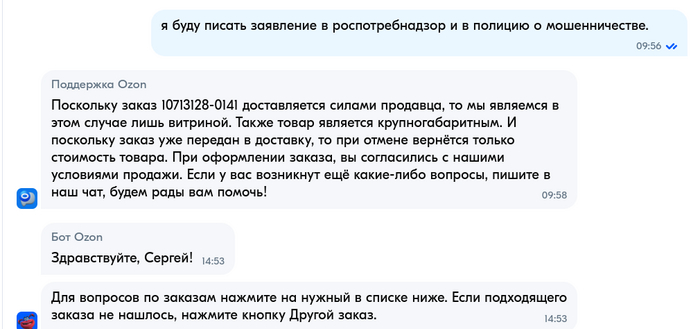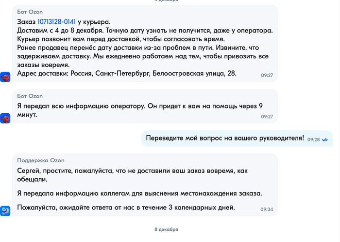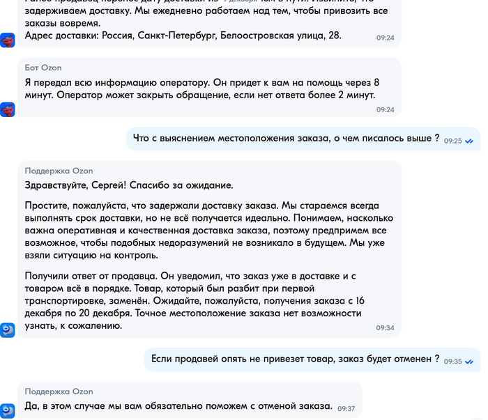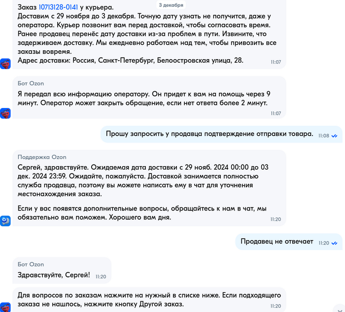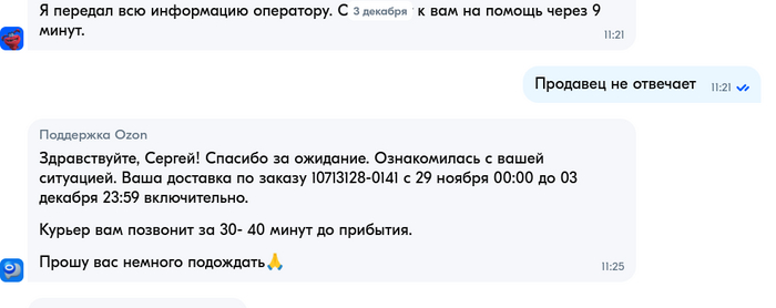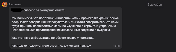 А мы тем временем спустя три дня получаем сообщение от маркетплейса: