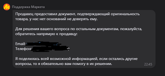 Кстати, забегая вперёд, вот какой документ предоставил поддержке продавец: