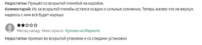 Вот кстати пара отзывов из карточки товара, которые появились уже после нашего заказа