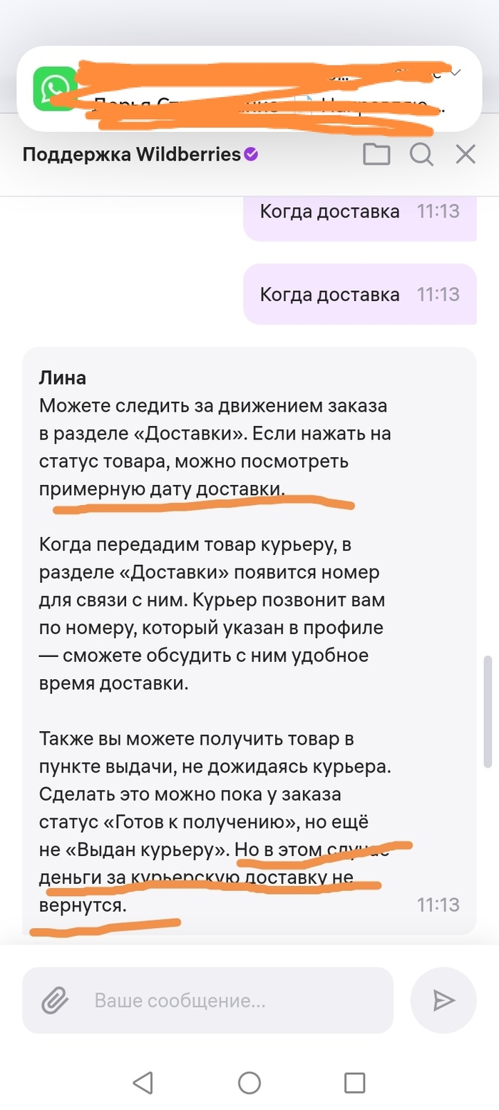 На вопрос, когда назначат курьера, и хули уже 2 часа как работает пункт выдачи и все не назначено - нет ответа. На вопрос, когда доставка, робот отвечает вот этой хуйней выше, что забирайте сами и теряйте деньги за доставку. На требование вернуть тогда деньги за доставку, раз курьера не назначают, обещали позвать оператора. Через 40 минут написали, что нету свободных операторов, как только, так сразу. Молодцы, чо, поддержки нет, курьеров нет, деньги за невыполненную доставку не вернём. Прям бизнес по-армянски 🤔 или всегда так было? Как тэгнуть эти гнилые ягодки?