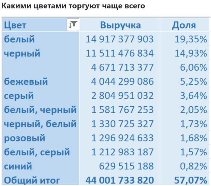 - 72% продаж приходятся на товары до 4 000 руб. 97% продаются дешевле 10 000 руб.
