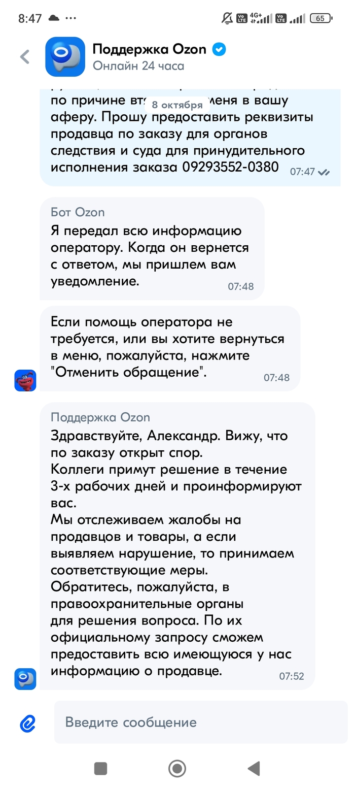 Поддержка озона вообще не стала париться по этому вопросу и отправила в правоохранительные органы!)