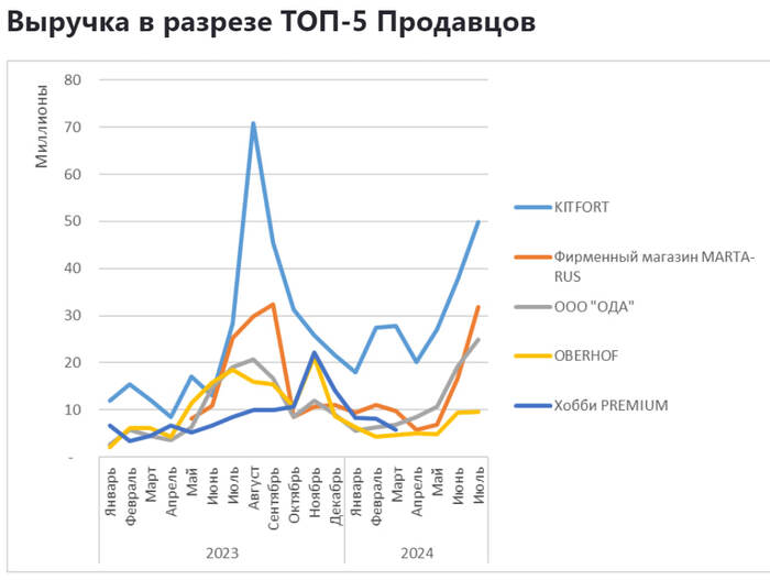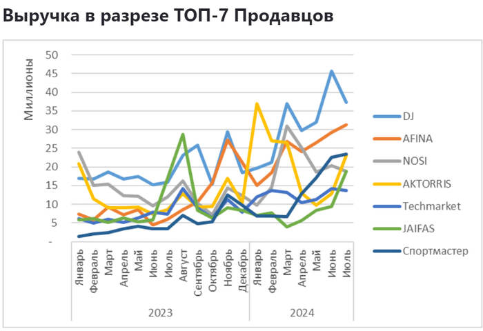 💵Выручка в категории в 2023 году составила 2.3 млрд руб., а за 7 месяцев 2024 года уже 4.7 млрд. Период за который смотрим категорию - с июля 2022 по июль 2024 включительно.