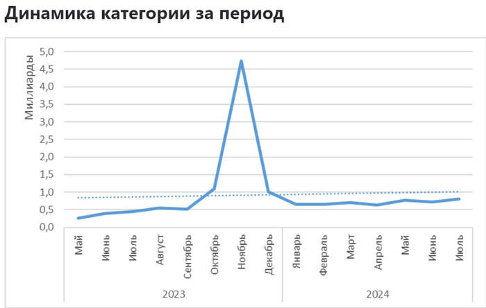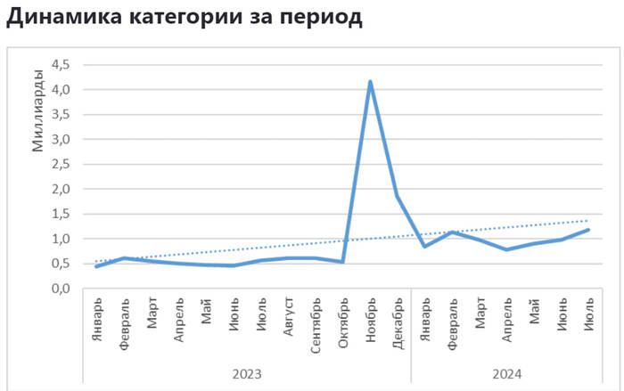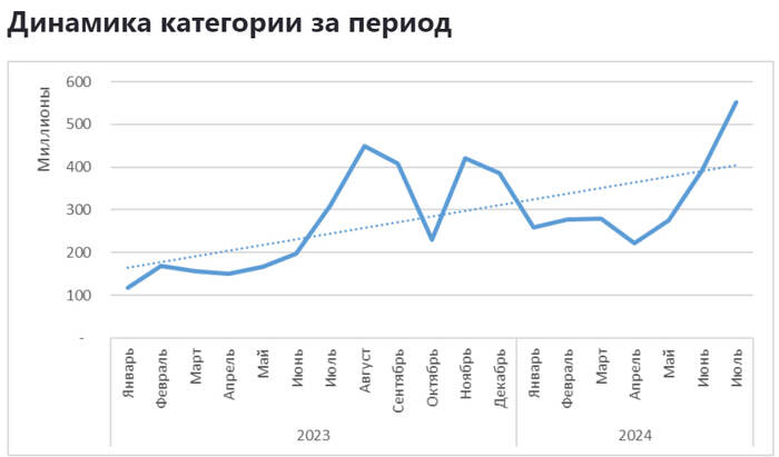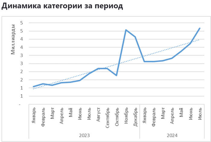 - Категория в 2024 году растёт на 200% по отношению ко всему 2023 году.