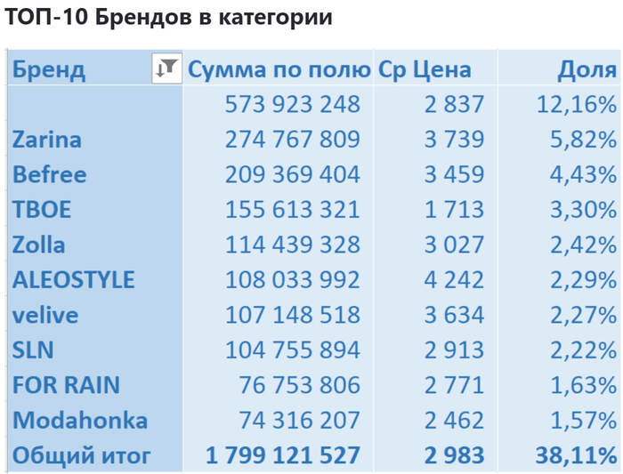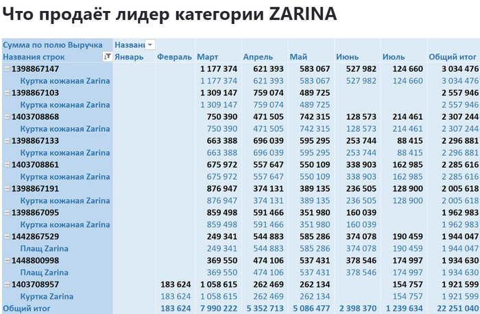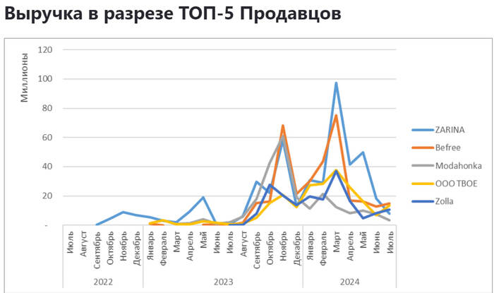 - ZARINA явный лидер категории и самый старый Продавец из ТОП-5