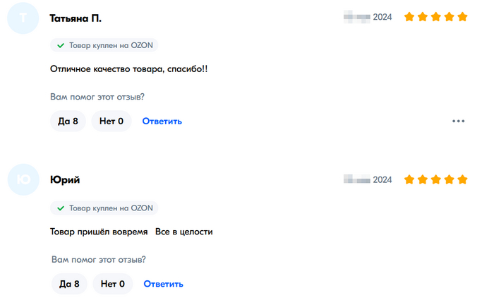 2. Накрученные отзывы в большинстве случаев однотипные и бессмысленные: «Пришло быстро», «хороший товар», «отличное качество. оригинал» и т.д. Сути в них ноль. Но, это и так многие понимают.