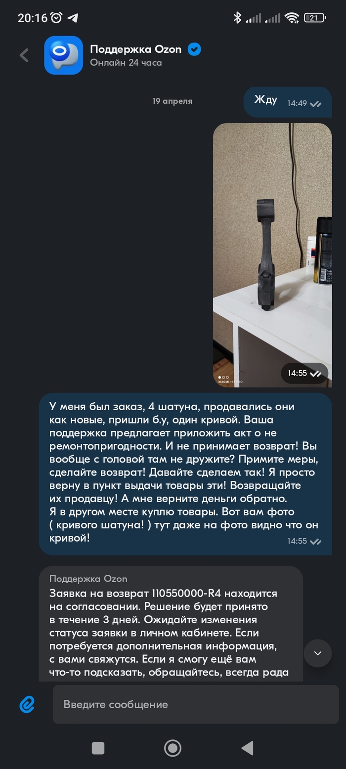 Основная мысль поддержки после недели переписки с продавцом - “Покупатель должен заявить о замечаниях (составить акт вместе с сотрудником, доставившим товар, сразу в момент доставки или в течение 2-х часов с момента получения заказа из автоматизированного пункта выдачи. По истечении указанного срока продавец имеет право не рассматривать претензии подобного рода. “