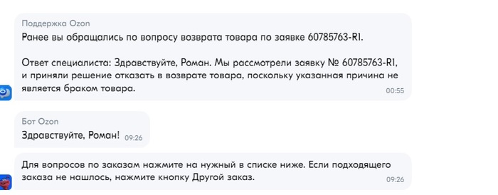 В ответ Озон, в лучших традициях нерадивых водителей такси, говорит мы отменять не будем, сами отменяйте, а деньги за доставку мы заберём себе.