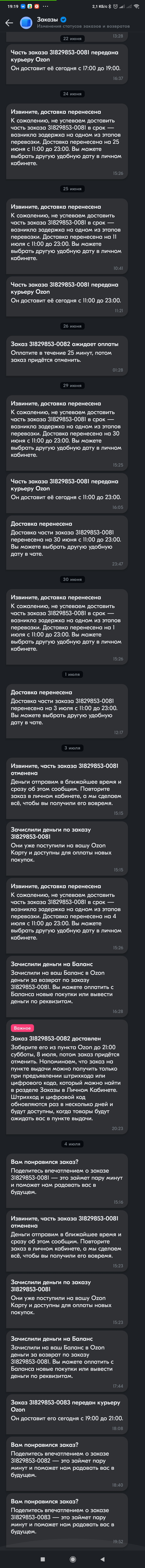 Ниже скрин всех уведомлений из личного кабинета по заказу.