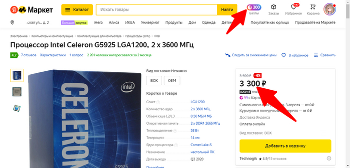 Решил я значит купить недорогой процессор для тестов. Занимаюсь ремонтом ПК и иногда нужен камень с встройкой для различных манипуляций.. Вбор пал на проц Celeron G5925 полез на яндекс т.к. у меня там купон, подписка я.минус и 300 фантиков, которые они именуют баллами.