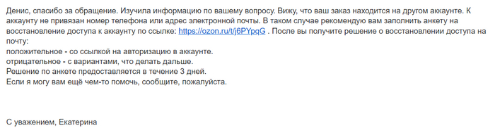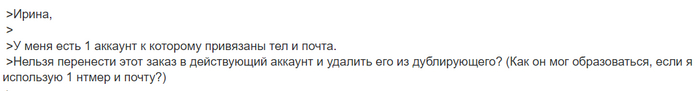 Екатерина подтверждает, что мой заказ находится на каком-то другом аккаунте.