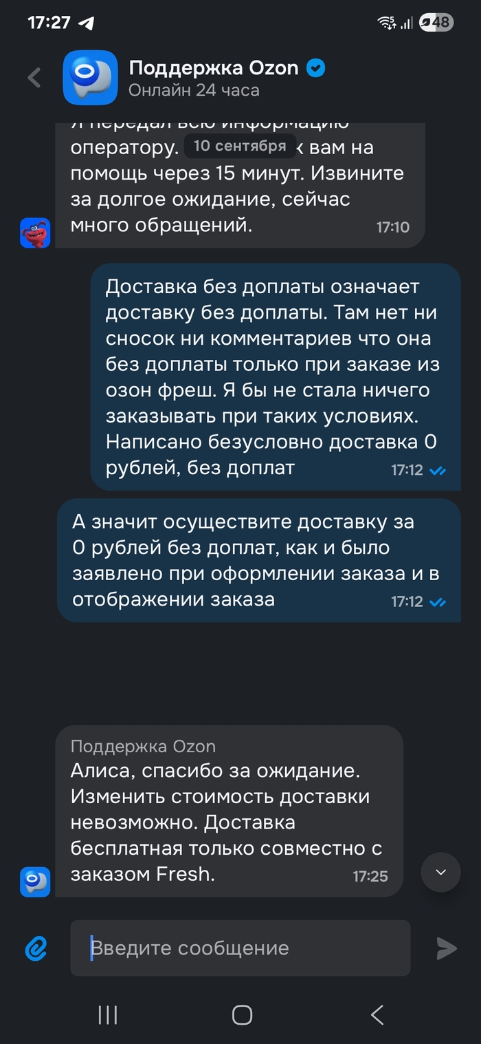 На момент написания статьи - 10 сентября - Озон так и не предоставил ответ - сегодня мы отправили досудебную претензию в адрес маркетплейса Озон. Будем оповещать вас о любых изменениях в деле.