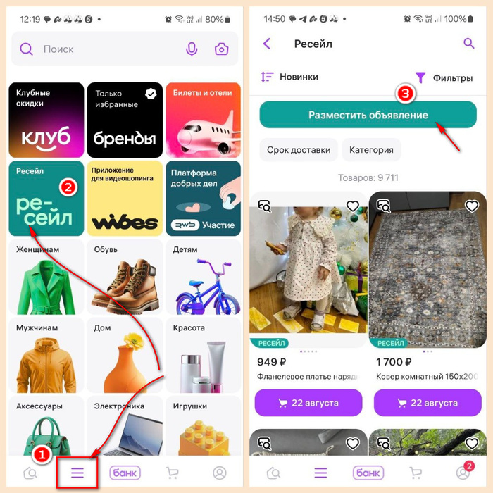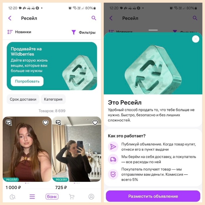 Ресейл доступен как в мобильном приложении Вайлдберриз, так и с десктопных устройств.