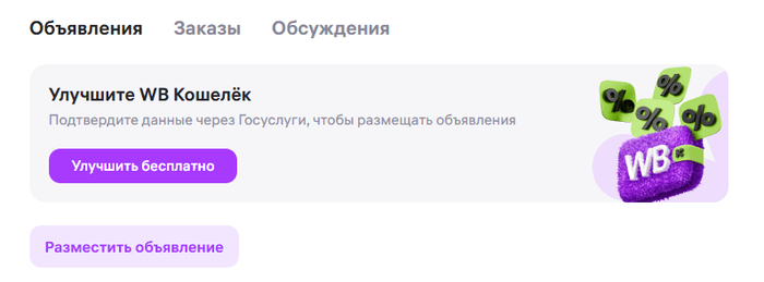 Функция ресейла будет недоступна, пока вы не свяжете свой WB-кошелёк с вашим аккаунтом на «Госуслугах».
