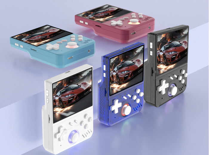 Консоль выполнена в металлическом корпусе, что придаёт прочность и долговечность устройству. Экран IPS диагональю 3, 5 дюйма обеспечивает чёткое изображение с широкими углами обзора. Устройство работает на Linux и поддерживает эмуляцию популярных ретро-платформ, позволяя запускать сотни классических игр.