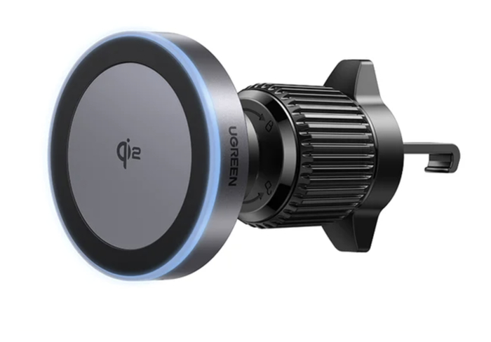 Держатель крепится на решётку вентиляции и подключается к питанию через разъём USB-C. Он совместим со смартфонами, поддерживающими стандарт Qi2, и автоматически регулирует подачу энергии, что защищает аккумулятор от перегрева и перезарядки.