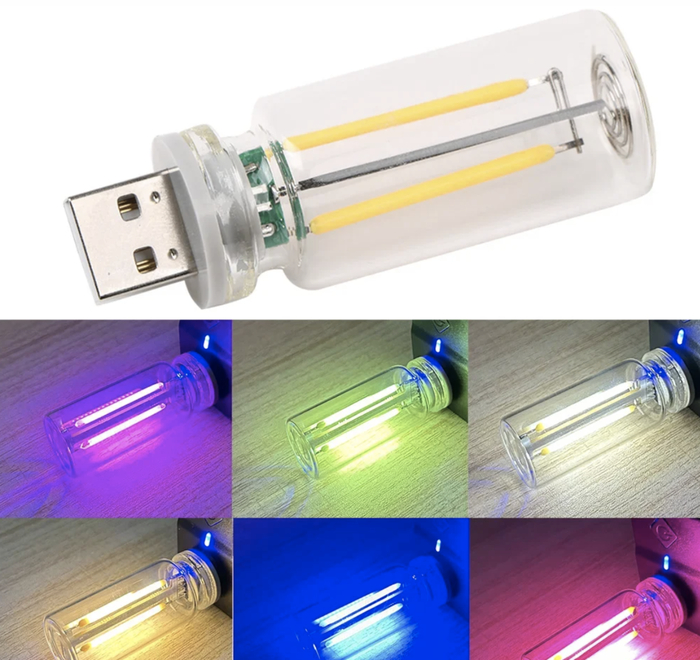 Лампа выполнена в стиле ретро с имитацией лампы накаливания Эдисона. Она подключается через USB и оснащена сенсорной системой управления.