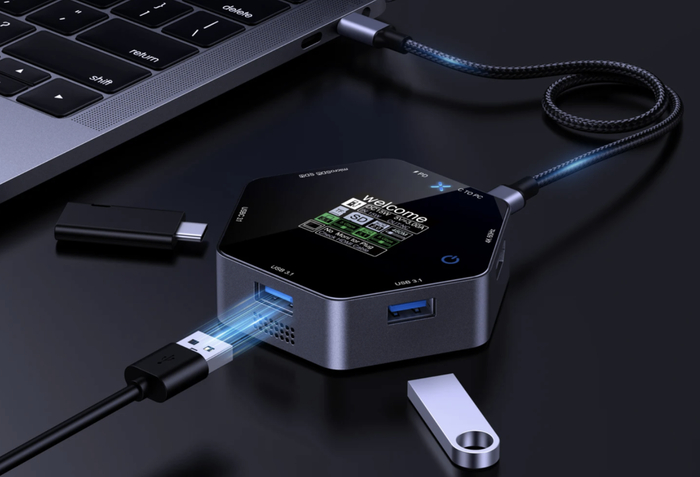 Док-станция объединяет функции зарядки и подключения периферии. Устройство оснащено портами USB, HDMI с поддержкой вывода 4K 60 Гц, а также разъёмом PD для быстрой зарядки ноутбука.