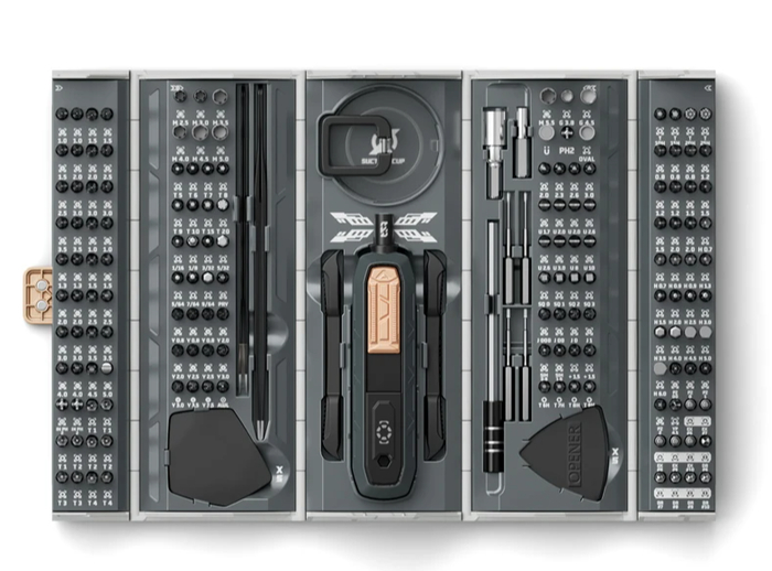 Профессиональный набор мини-отвёрток для ремонта гаджетов и мелкой техники. 24 насадки из высокопрочной стали S2. Магнитный держатель и эргономичная ручка обеспечивают удобство. Компактный металлический кейс легко помещается в карман. Отличный помощник дома и в поездках.