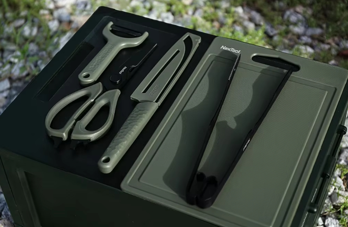 Комплект инструментов, необходимых для приготовления барбекю, включающий щипцы, лопатку, вилку и другие принадлежности. Изготовлены из прочной нержавеющей стали, удобны в использовании и легко чистятся.