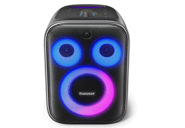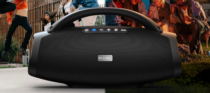 Портативная колонка с насыщенным и громким звуком мощностью до 200 Вт. Поддержка Bluetooth, AUX и карты памяти. Влагозащищённый корпус и долгое время автономной работы.