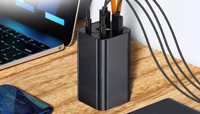 Мощный внешний аккумулятор с высокой емкостью на 200000 мАч. Способен заряжать ноутбуки, смартфоны и даже небольшие бытовые приборы. Имеет несколько портов и поддержку быстрой зарядки до 120 Вт.