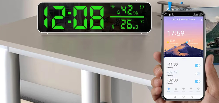 Будит мягко, с настраиваемыми мелодиями. Удобный индикатор температуры и влажности. Идеален для спальни и подарка.