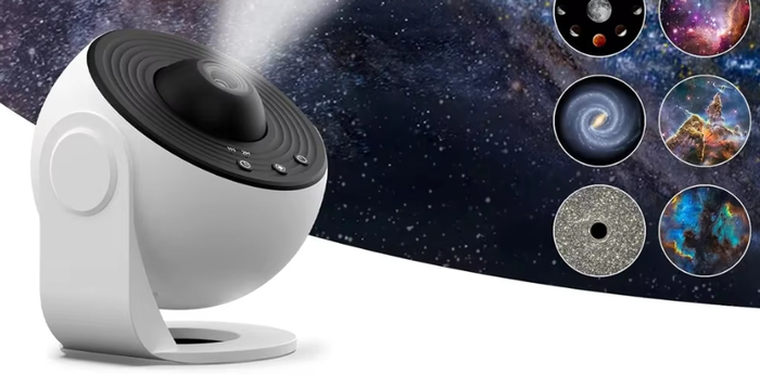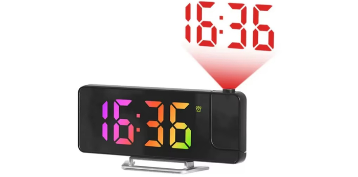 Стильный будильник с функцией проекции времени на стену или потолок. Оснащён ярким дисплеем и настройкой яркости.