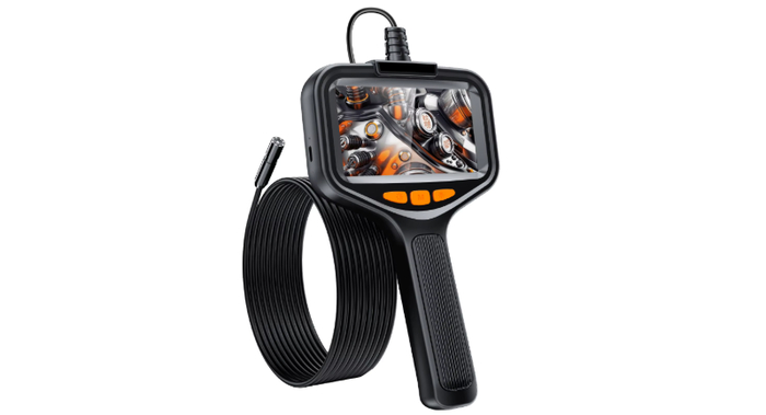 Инспекционная камера с экраном 4.3", разрешение Full HD. Подходит для диагностики труб, техники, автомобилей.