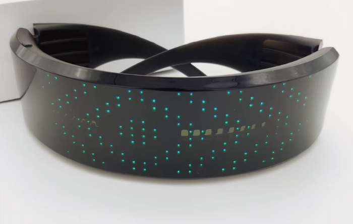 Яркие светодиодные очки с изменениями анимации и текста через мобильное приложение. Поддержка Bluetooth-соединений, позволяет легко управлять эффектами.