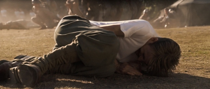 Ещё один фрагмент, который отлично показывает сущность персонажа. Идёт отбор кандидатов на получение сыворотки Супер-солдата. Фаворитом учёных является тощий, слабый, непутёвый, но в то же время смышлённый и самоотверженный Стив Роджерс, который, разумеется не устраивает Полковника Честера Филлипса (сыгранный шикарным Томми Ли Джонсом), который считает, что кандидат должен быть крепким, крупным, выносливым крепышом. Решив подкрепить свои слова действием, он бросает в толпу солдат учебную гранату, которая заставляет даже Терминаторов бежать от неё как крыс. Ну а что было дальше вы и сами знаете: "Мстители, к бою".