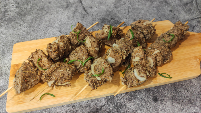1. Мясо нарезаем на небольшие стейки до 1 см толщиной. Накрываем их плёнкой и отбиваем молотком до 2-3 мм. Солим, перчим, посыпаем паприкой и сухим чесноком